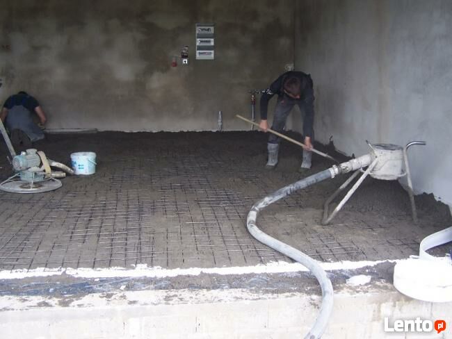 Oferuję państwu usługę w zakresie wykonywania posadzek agregatem.Wykonujemy posadzki, wylewki, szlichty przy pomocy pompy spalinowej dzięki której możemy pompować beton na dużą odległość i wysokość. Wylewamy pod: parkiety, panele, płytki ceramiczne itp. oraz na ogrzewanie podłogowe. Poziomy nanosimy nowoczesną poziomicą wężową zwaną (nivcomp) http://www.youtube.com/watch? Posadzka wykonywana z półsuchej zaprawy betonowej dzięki której uzyskujemy bardzo równe podłoże, następnie zacierana mechanicznie uzyskuje powierzchnię bardzo wysokiej trwałości, niskiej ścieralności, wysokiej odporności mechanicznej. Na życzenie klienta dodajemy odpowiednie plastyfikatory i włókna polipropylenowe.Wykonujemy również posadzki pod duże obciążenia używając kruszywa do 8mm np.garaże,warsztaty,stodoły,cena ustalana indywidualnie u klienta po oględzinach.